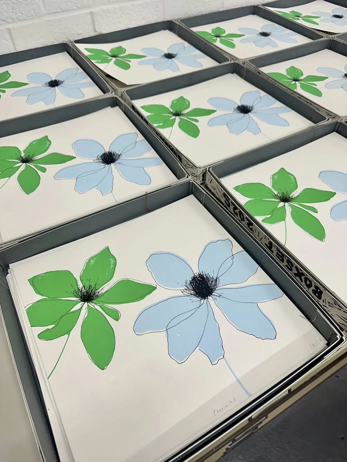 The East London Printmakers Boxset is an annual project undertaken by ELP artists. Each participating artist creates a limited edition of 30 x 30 cm prints, which are then collected into specially printed boxes. Every artist receives their own box, while others are kept for the ELP archive, exhibitions, and sale. Every five years, one set is donated to the Victoria & Albert Museum, and each year a box is also given to John Purcell who generously subsidises the paper used. This year’s Box Set will be launched at the Festival of Print in November where prints will be on display and for sale.