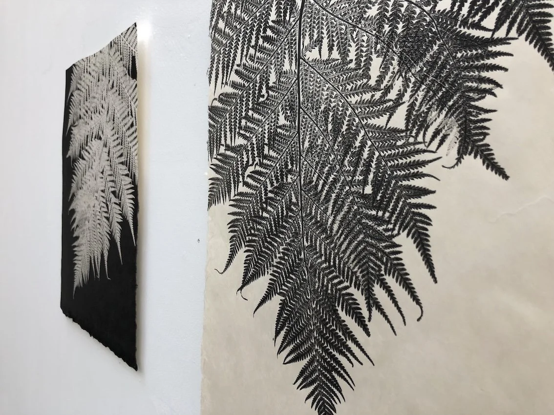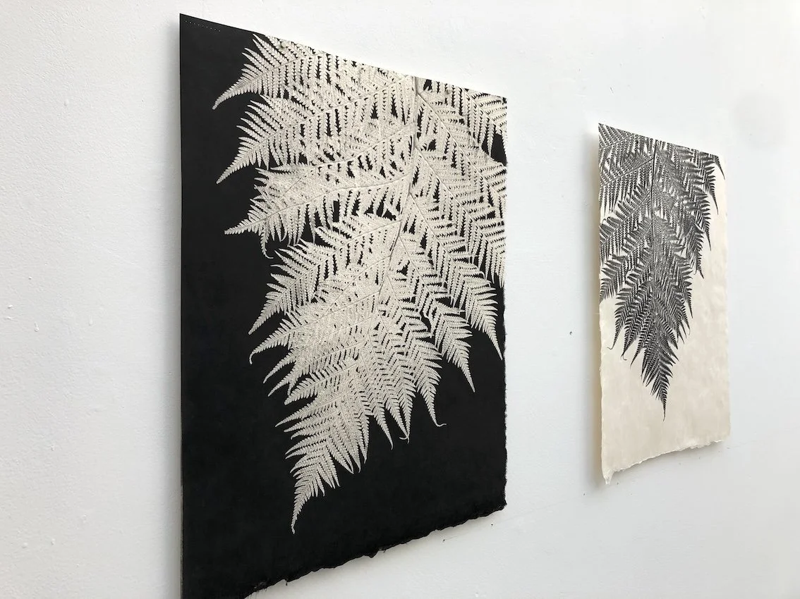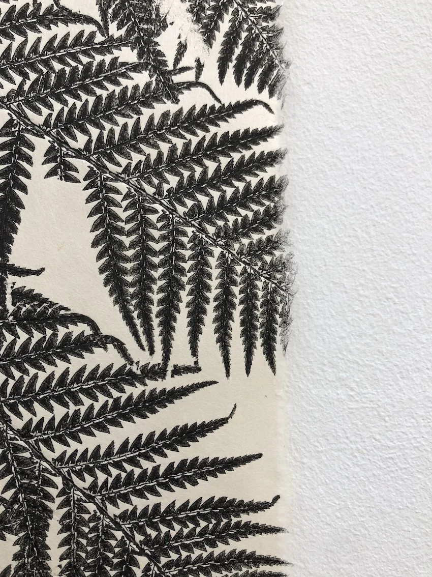 Botanical monotype prints made with tree fern fronds, Dicksonia antarctica.