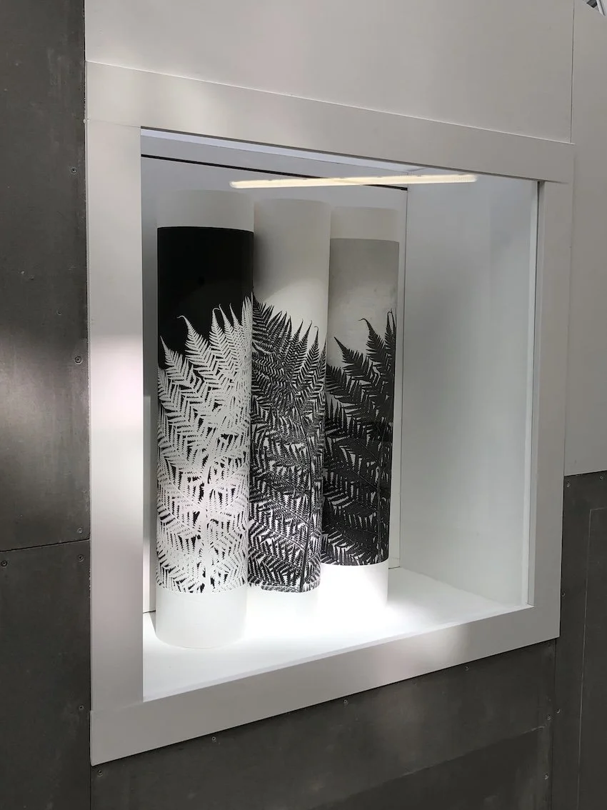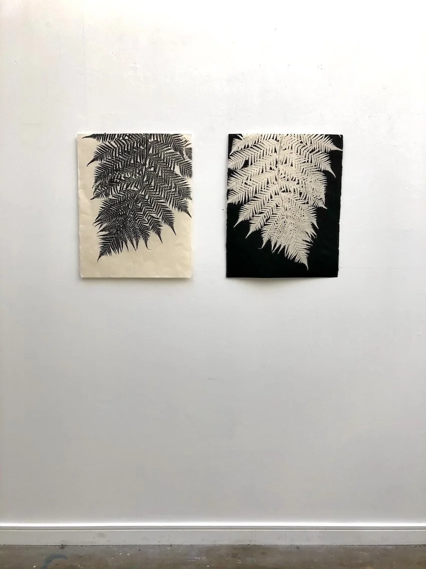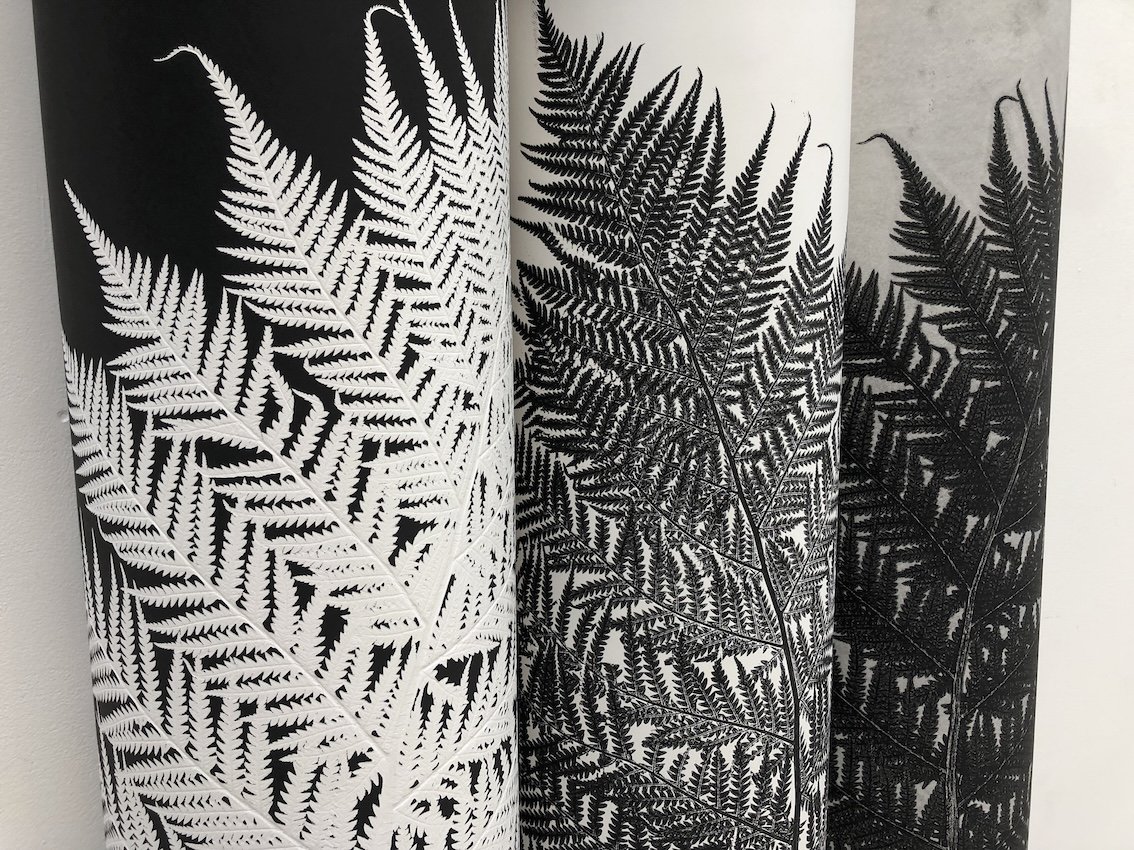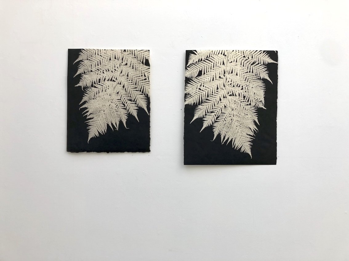 Botanical monotype prints made with tree fern fronds, Dicksonia antarctica.
